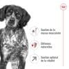 COMPOSITION : protéines de volaille déshydratées, farine de blé, farine de maïs, maïs, riz, graisses animales, blé, gluten de blé, pulpe de betterave, protéines animales hydrolysées, gluten de maïs, substances minérales, huile de soja, produits de levures, huile de poissons, téguments et graines de psyllium, fructo-oligosaccharides, huile d’algues Schizochytrium sp., levures (source de mannan-oligosaccharides).